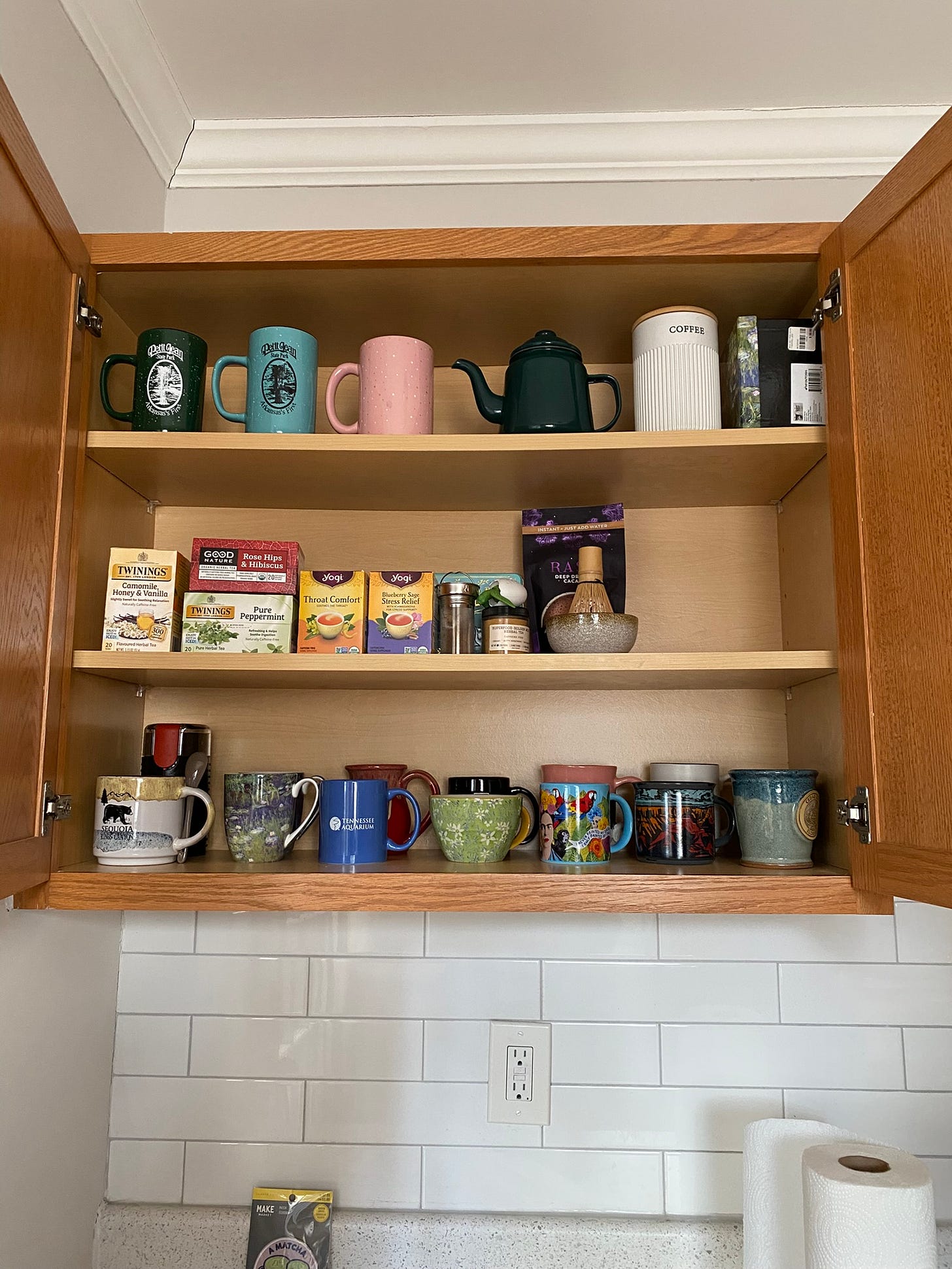 Speaking about brewing and steeping I love how "The first filled cabinet!" is the full of tea, cups, mugs and a lovely green teapot, it tells me how much tea is an important part of your daily life, how close to the truth is my observation?